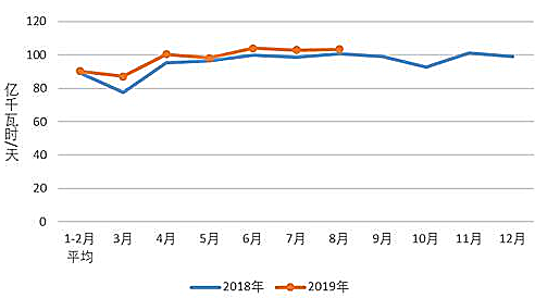 图2 2018、2019年分月制造业日均用电量