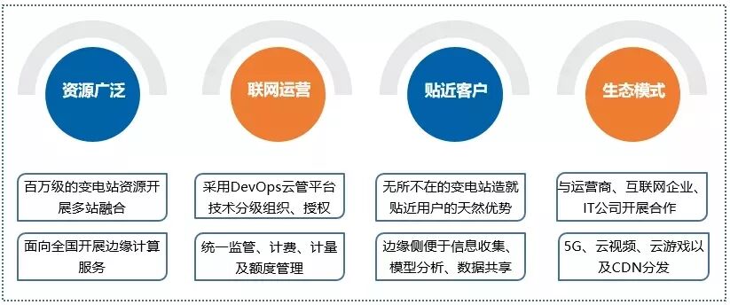 利用国家电网百万级变电站资源开展多站融合,首创面向全国的边缘计算服务,具备边缘基础设施、边缘计算能力、边缘存储能力以及边缘网络接入能力,资源上线、验收、投产能力强,为开展上层业务提供强有力的保障。