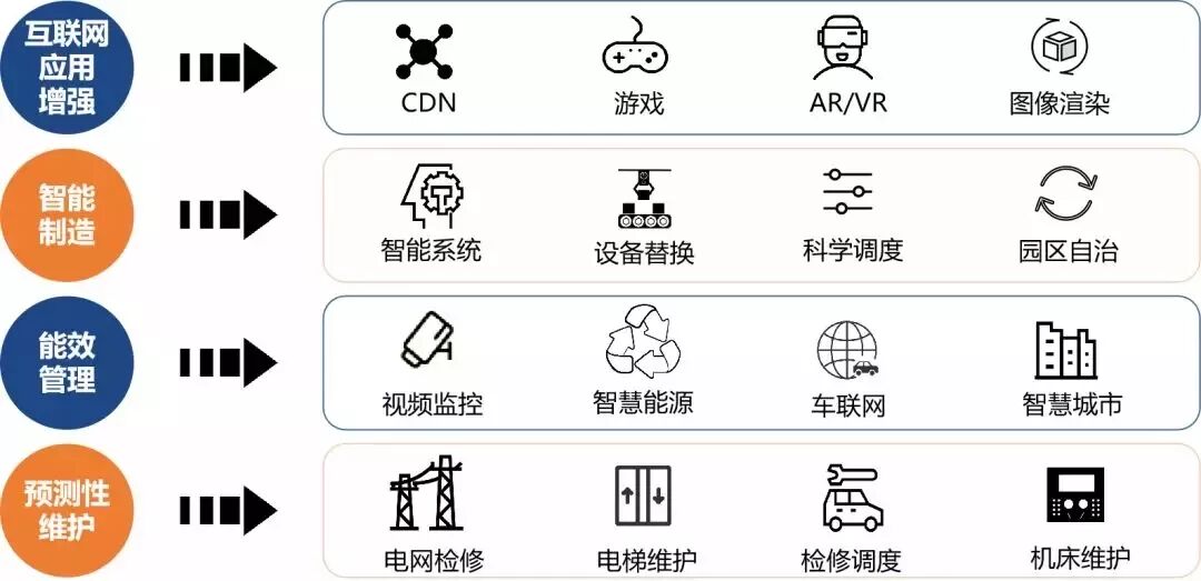 体系建设是基础,市场发展是目标。根据边缘计算产业联盟给出的定义,互联网应用增强、智能制造、能效管理、预测性维护成为多站融合目前极具市场前景的典型应用场景。